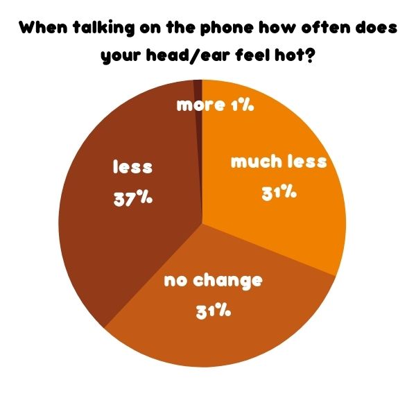 Overall 69% responded that Heating effect on the Head/Ear when using a phone occurred Less Often since using smartDOT (183 out of 267)