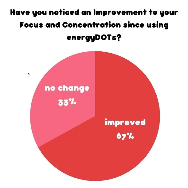 Overall 67% found they had Improved Focus and Concentration since using energyDOTs (105 out of 156)